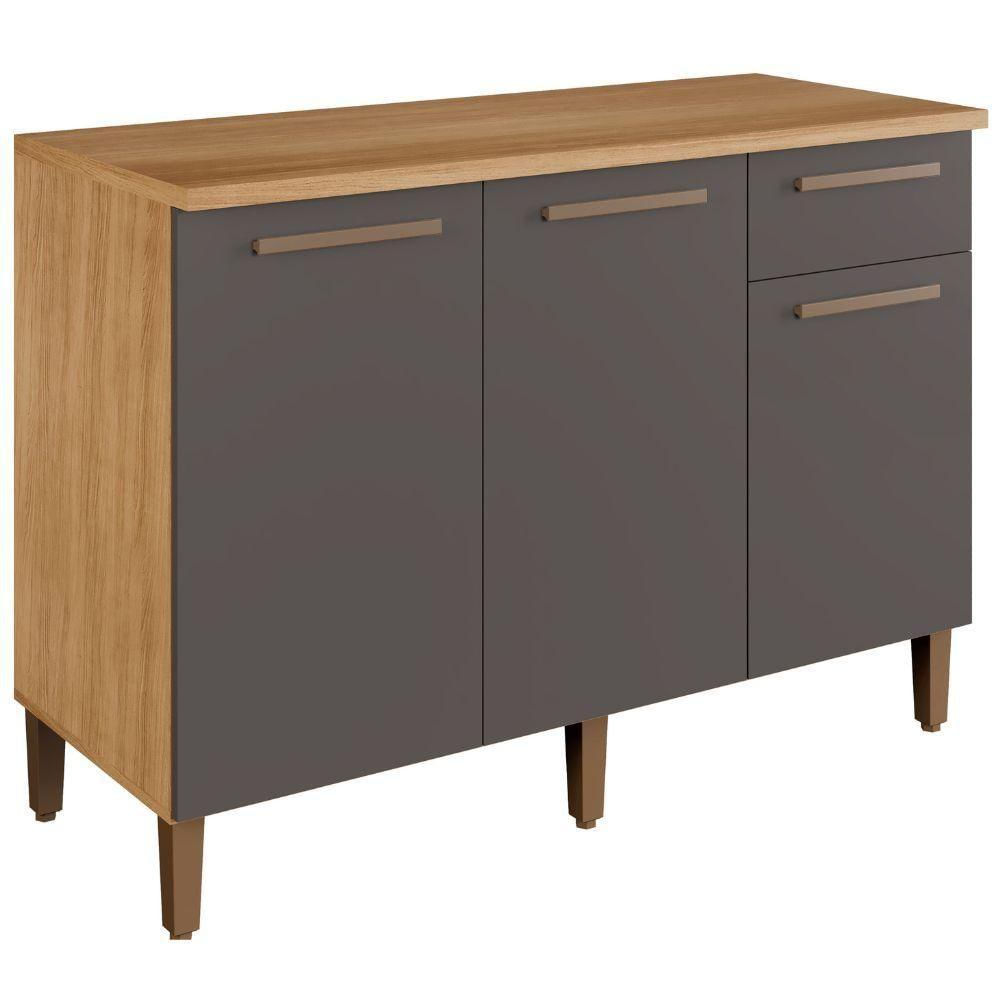 Balcão Titanium 3 Portas 1 Gaveta Cinamomo Grafite Arte Móveis