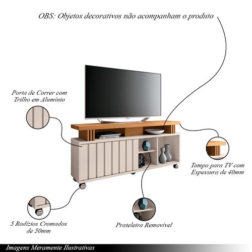 Bancada Decorativa Grohl 1.3 Porta Deslizante TV até 50 Pol Off White/Cinamomo G26 - Gran Belo