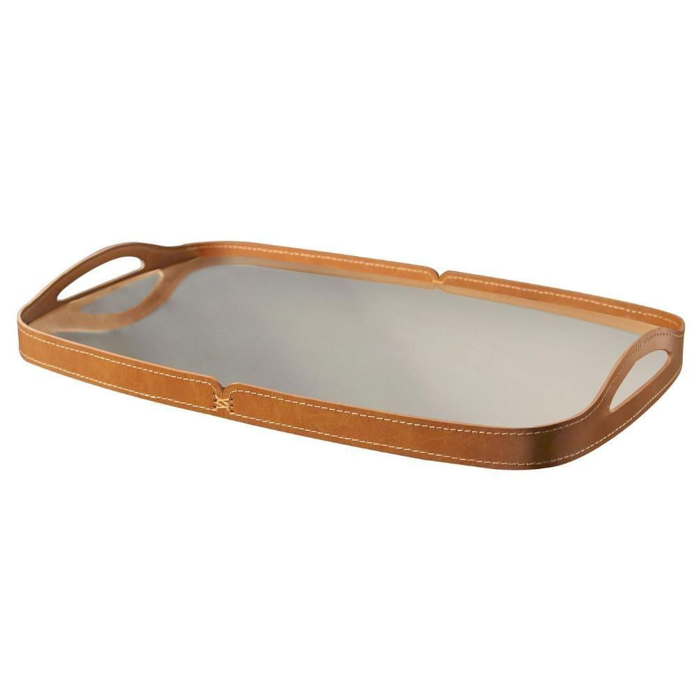 Bandeja Espelhada Vale em Couro Marrom Esta bandeja decorativa espelhada com detalhes em couro preto é a escolha perfeita para quem busca sofisticação e elegância em sua decoração. O espelho reflete a luz do ambiente, criando um efeito de brilho que dá um toque especial ao objeto. Além disso, a bandeja é versátil e pode ser usada para diversos fins, como servir bebidas e aperitivos ou como um item de decoração para objetos pessoais. Com detalhes em couro marrom oferece um toque clássico e elegante, que combina facilmente com diferentes estilos de decoração. Feita com materiais de alta qualidade, a bandeja é resistente e durável, garantindo que possa ser usada por muitos anos. Esta bandeja decorativa espelhada com detalhes em couro marrom é a escolha perfeita para quem busca um item funcional e elegante para sua casa ou escritório. Especificações - Medidas: Altura 3,2 cm / Largura 30 cm / Comprimento 50 cm; - Material: MDF; Espelho; Couro na cor Marrom; - Peso do produto: 3 kg. NA