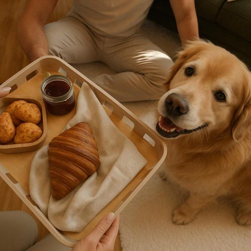Bandeja para Servir Café da Manhã Bege 35x29cm Travessa Retangular Bambu Ou.