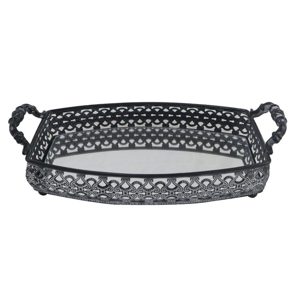 Bandeja retangular em ferro com espelho e alça L'Hermitage Fez 35x22,5x9cm cor preta