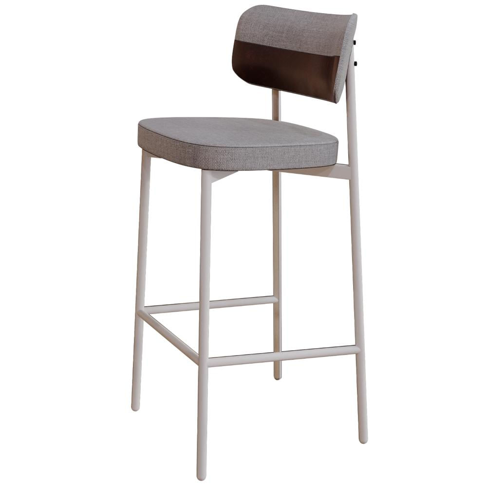 Banqueta Alta Bar Cozinha Sala De Jantar Aço Branco Kaira C01 Linho Cinza Courino Café - Lyam Decor