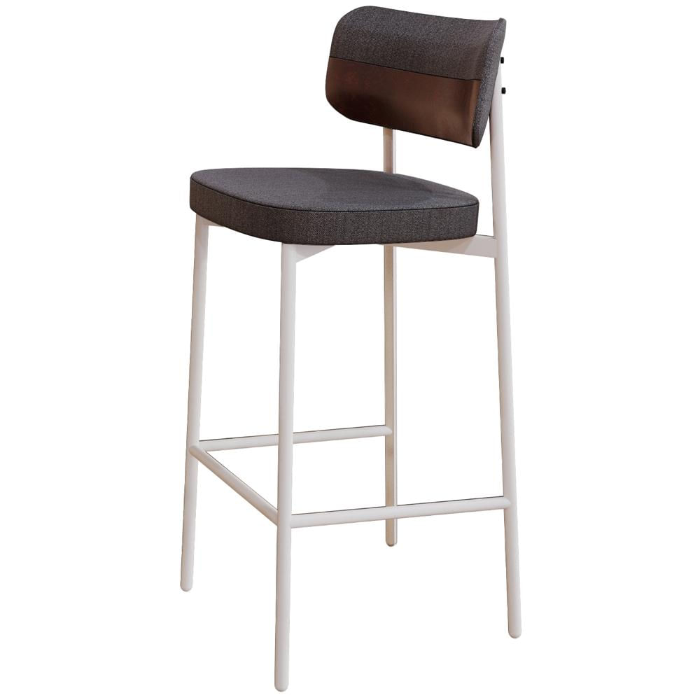 Banqueta Alta Bar Cozinha Sala De Jantar Aço Branco Kaira C01 Linho Preto Courino Café - Lyam Decor