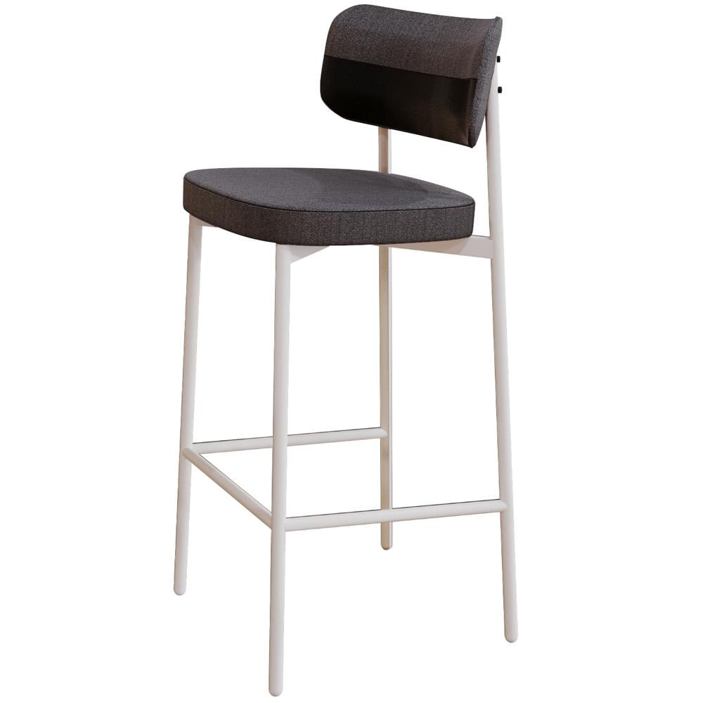 Banqueta Alta Bar Cozinha Sala De Jantar Aço Branco Kaira C01 Linho Preto Courino Preto - Lyam Decor