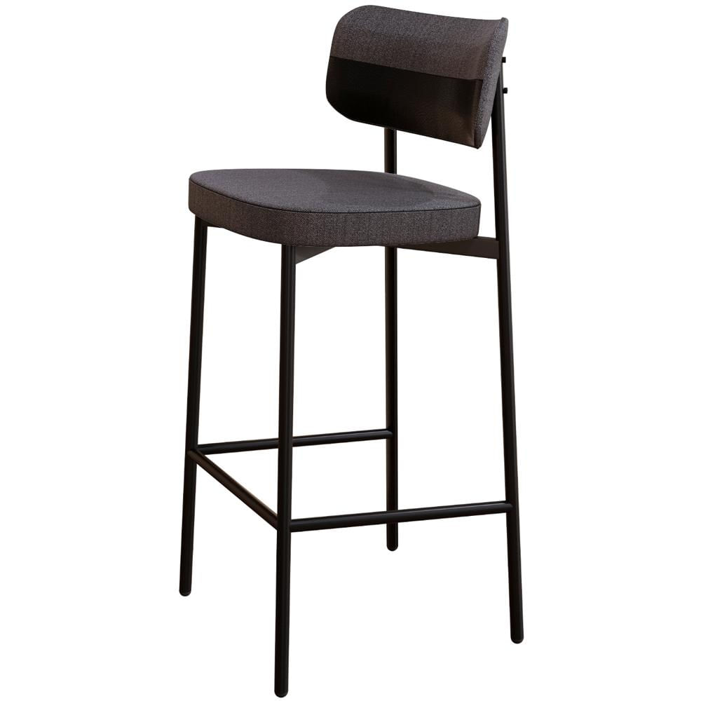 Banqueta Alta Bar Cozinha Sala De Jantar Aço Preto Kaira C01 Linho Preto Courino Preto - Lyam Decor
