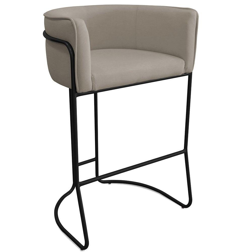 Banqueta Alta Com Encosto Betina Base Preto Poliéster Bege Escuro - Nexta Casa