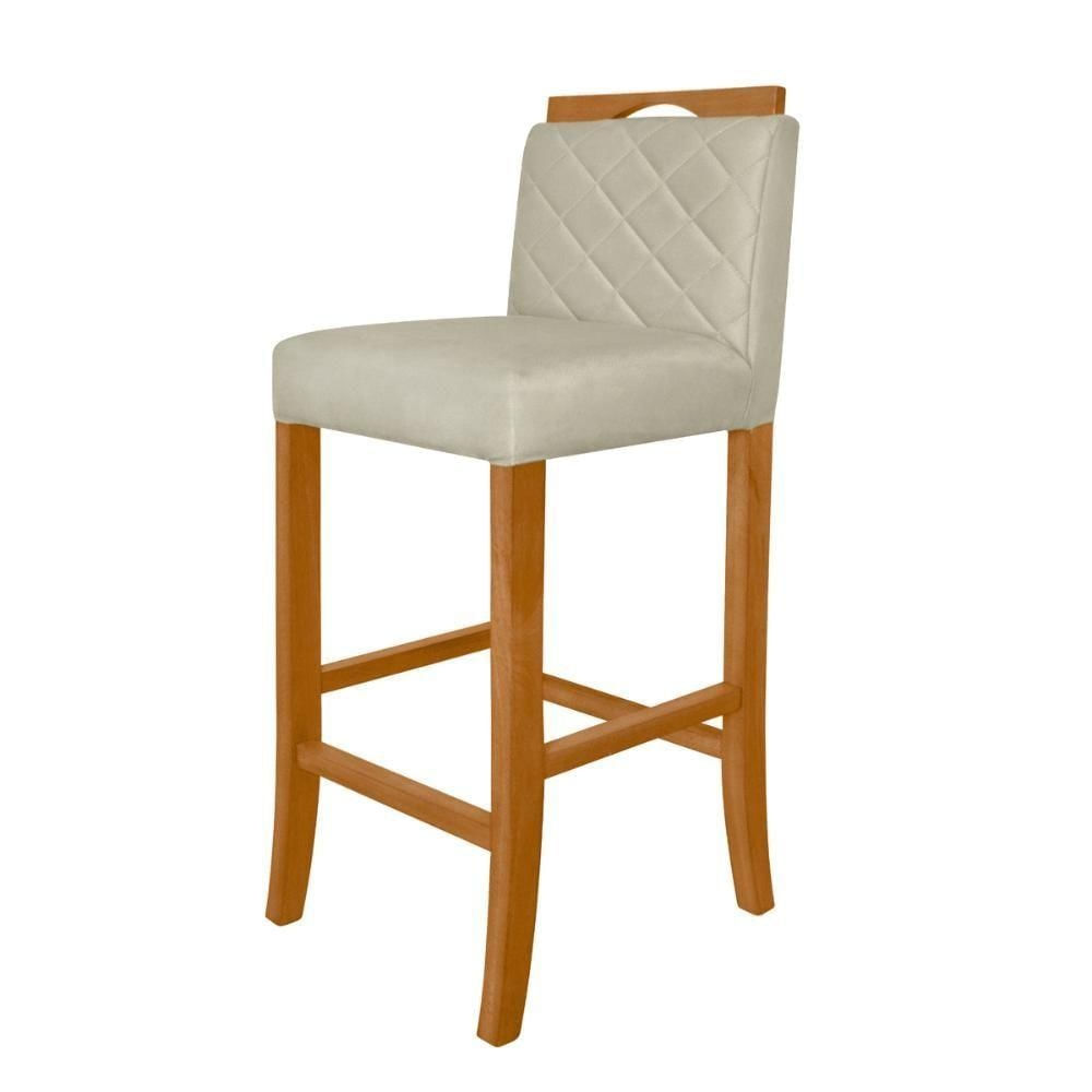 Banqueta Alta Para Cozinha De Madeira Maciça Estofada Com Encosto Multimóveis Cr15018 Madeirado-Bege