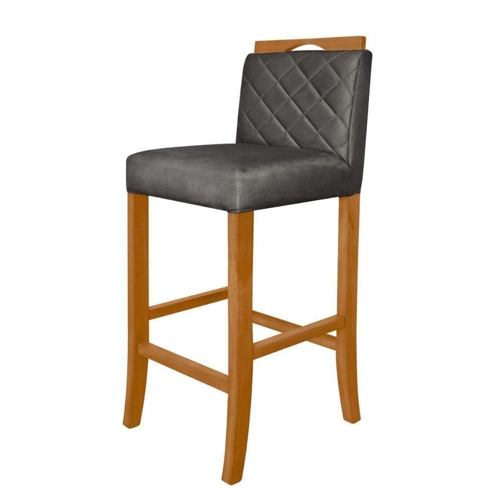 Banqueta Alta Para Cozinha De Madeira Maciça Estofada Com Encosto Multimóveis Cr15018 Madeirado-Cinza