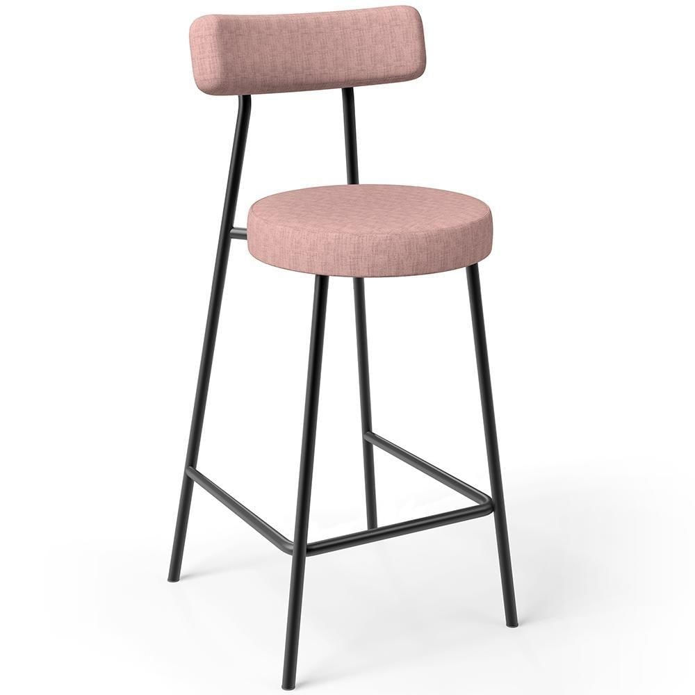 Banqueta Baixa Bar Cozinha Sala De Jantar Aço Milão L02 Linho Rosa - Lyam Decor