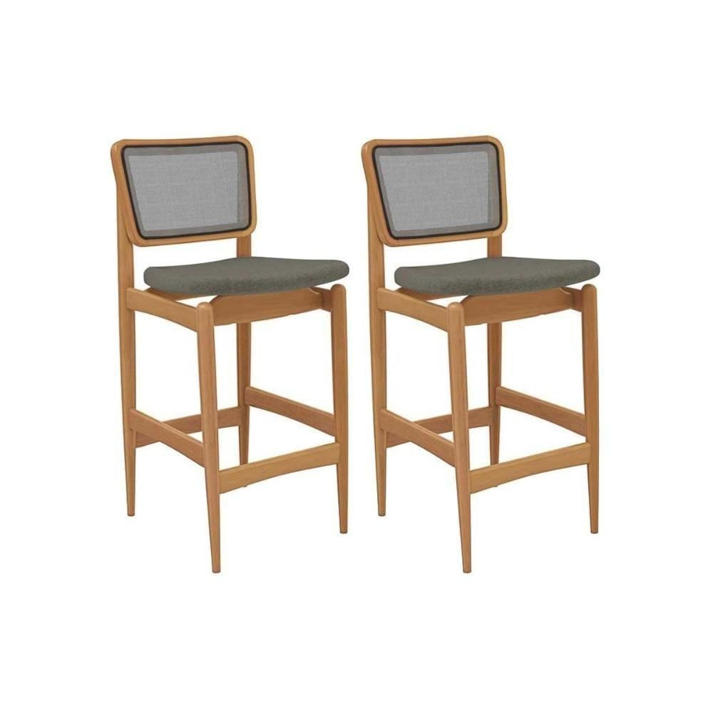 Banqueta Sala de Jantar Liz 1BMM009CA Premium Madeira Maciça Kit 2 Un Carvalho/Linho Escuro/Tela Grafite Kappesberg Abaixo segue os produtos que fazem parte desse KIT:
