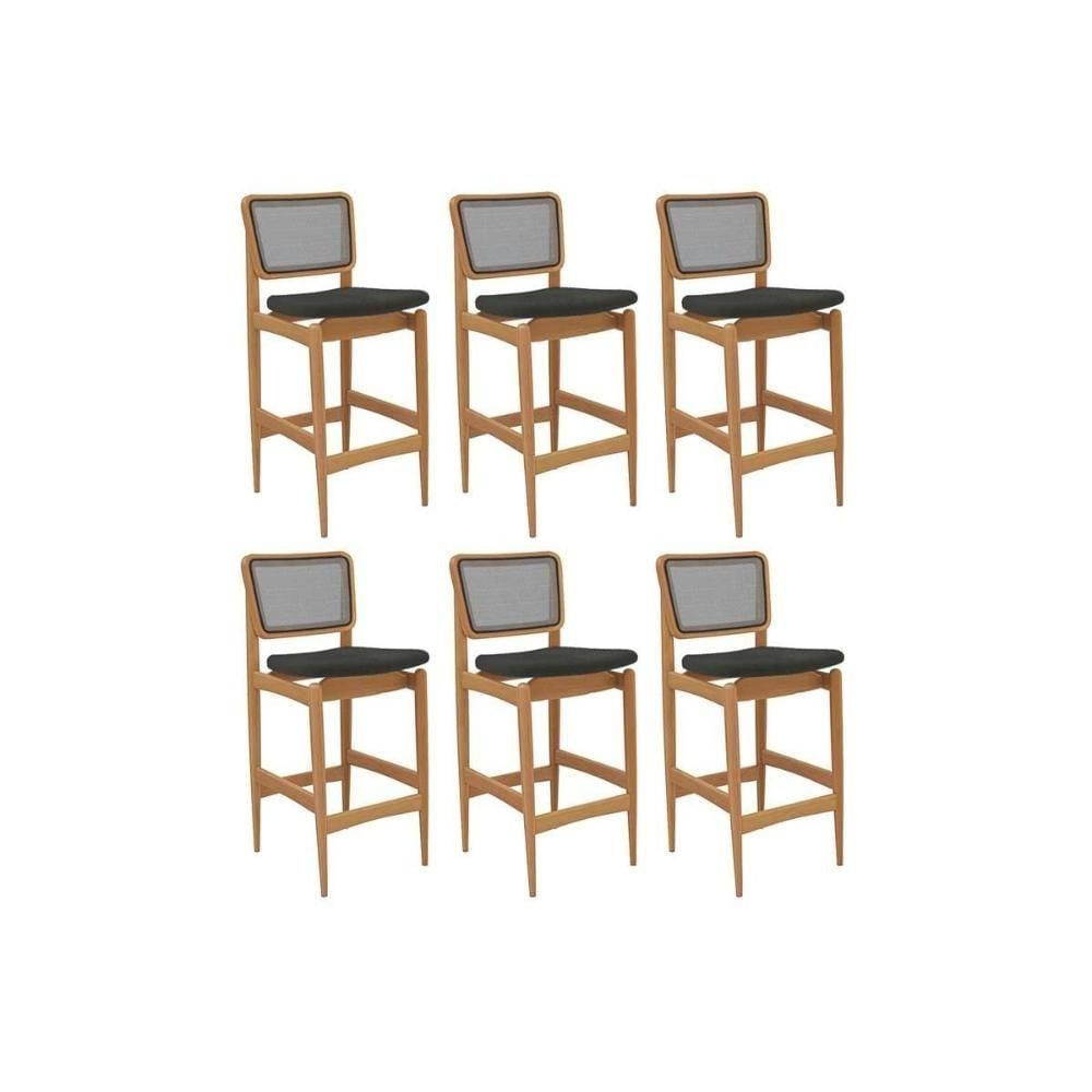 Banqueta Sala de Jantar Liz 1BMM009CA Premium Madeira Maciça Kit 6 Un Carvalho/Boucle Grafite/Tela Grafite Kappesberg Abaixo segue os produtos que fazem parte desse KIT: