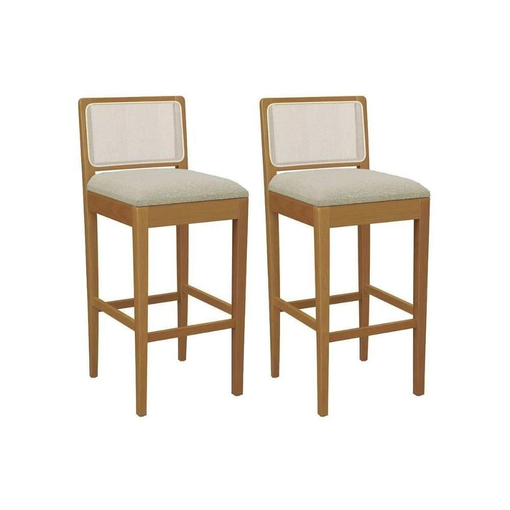 Banqueta Cozinha Sara 1bmm005ca Premium Madeira Maciça Kit 2 Un Carvalho/boucle Bege/tela Bege - Kappesberg