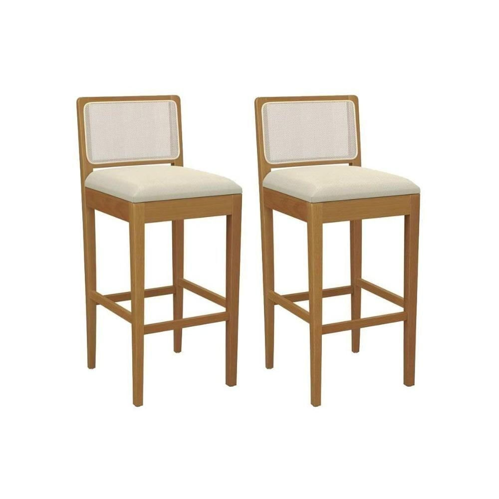 Banqueta Cozinha Sara 1bmm005ca Premium Madeira Maciça Kit 2 Un Carvalho/linho Bege Argila/tela Bege - Kappesberg