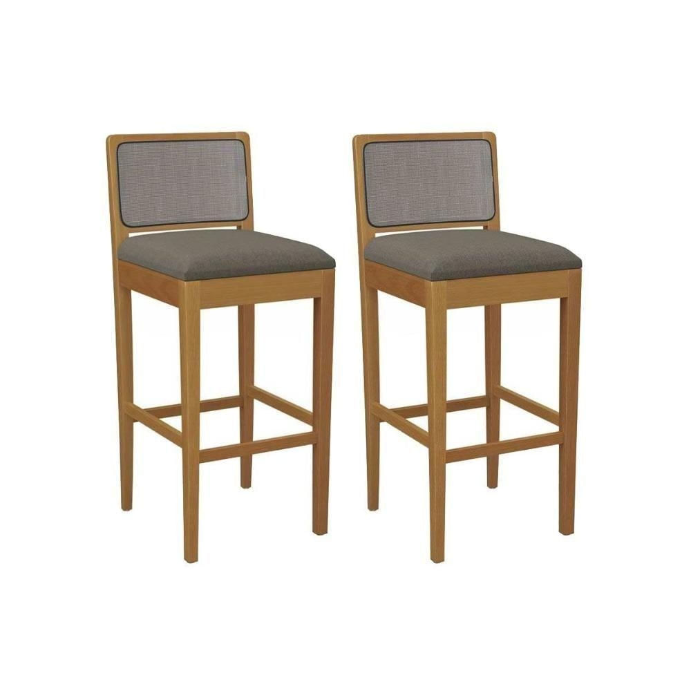 Banqueta Cozinha Sara 1bmm005ca Premium Madeira Maciça Kit 2 Un Carvalho/linho Escuro/tela Grafite Kappesberg