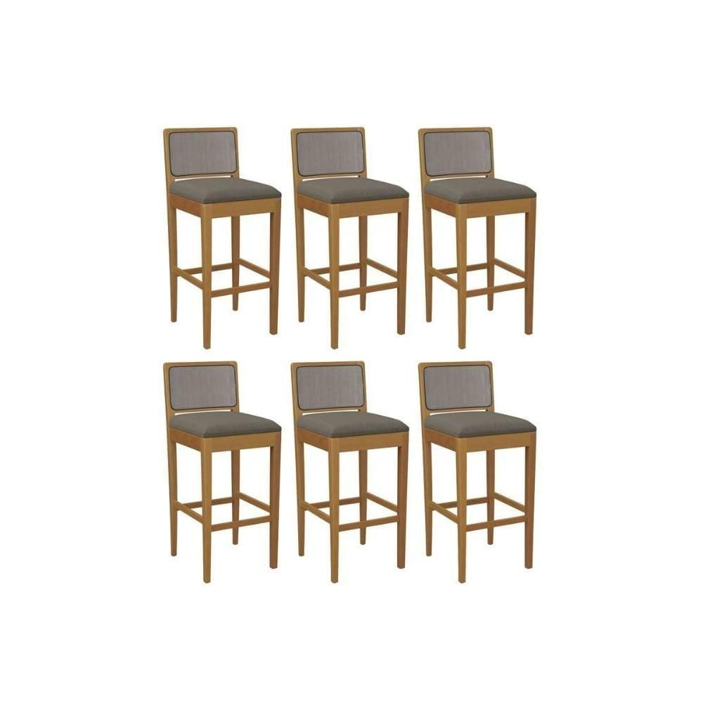Banqueta Cozinha Sara 1bmm005ca Premium Madeira Maciça Kit 6 Un Carvalho/linho Escuro/tela Grafite Kappesberg