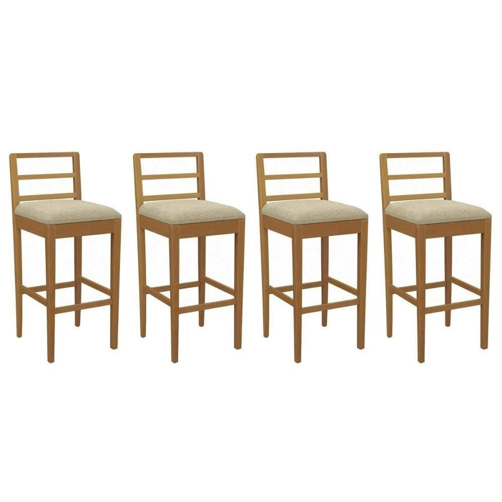 Banqueta Cozinha Sofia 1bmm006ca Premium Madeira Maciça Kit 4 Un Carvalho/boucle Bege - Kappesberg