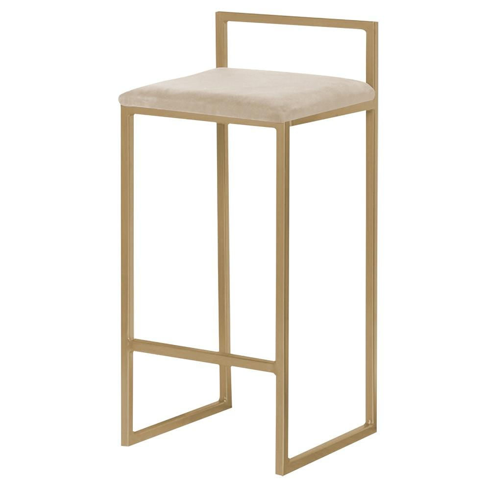 Banqueta Decorativa Selena Base Gold Veludo Bege - Gran Belo