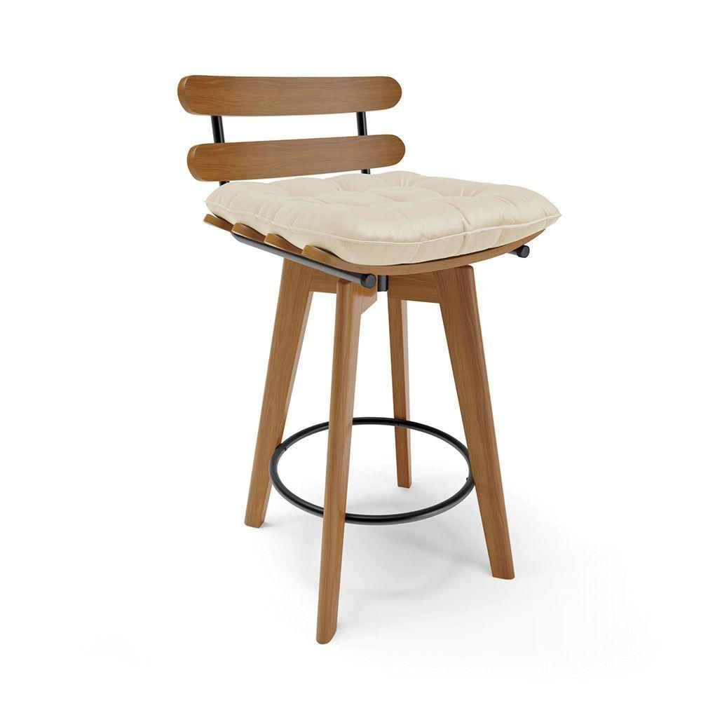 Banqueta Giratória Costela Corino Bege Base Madeira