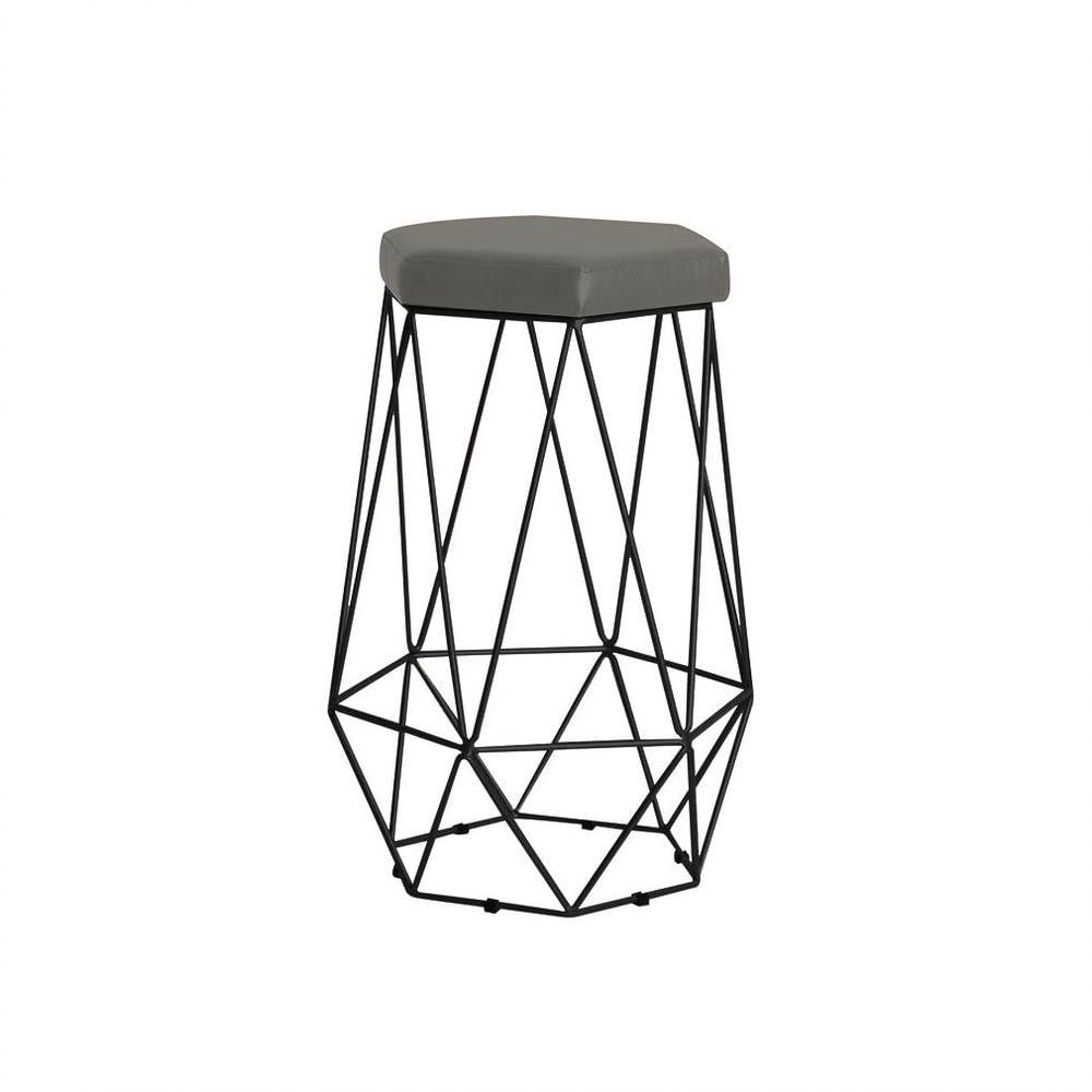 Banqueta Decorativa Rubel Base Preta Veludo Cinza - Gran Belo