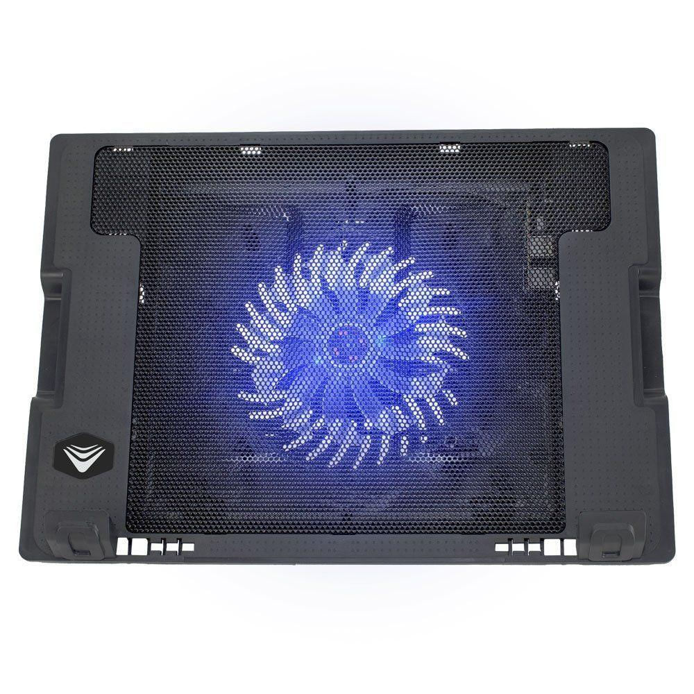 Compatível com notebooks de até 15 polegadas, sua superfície em malha de metal foi especialmente desenvolvida para favorecer a saída do fluxo de ar, evitando o superaquecimento e garantindo que seu notebook mantenha o desempenho ideal mesmo em tarefas mais exigentes. Além disso, a base pode ser utilizada com segurança em superfícies planas, no colo ou até mesmo em cima da cama, graças às travas de apoio emborrachadas e ajustáveis que oferecem maior firmeza ao equipamento.