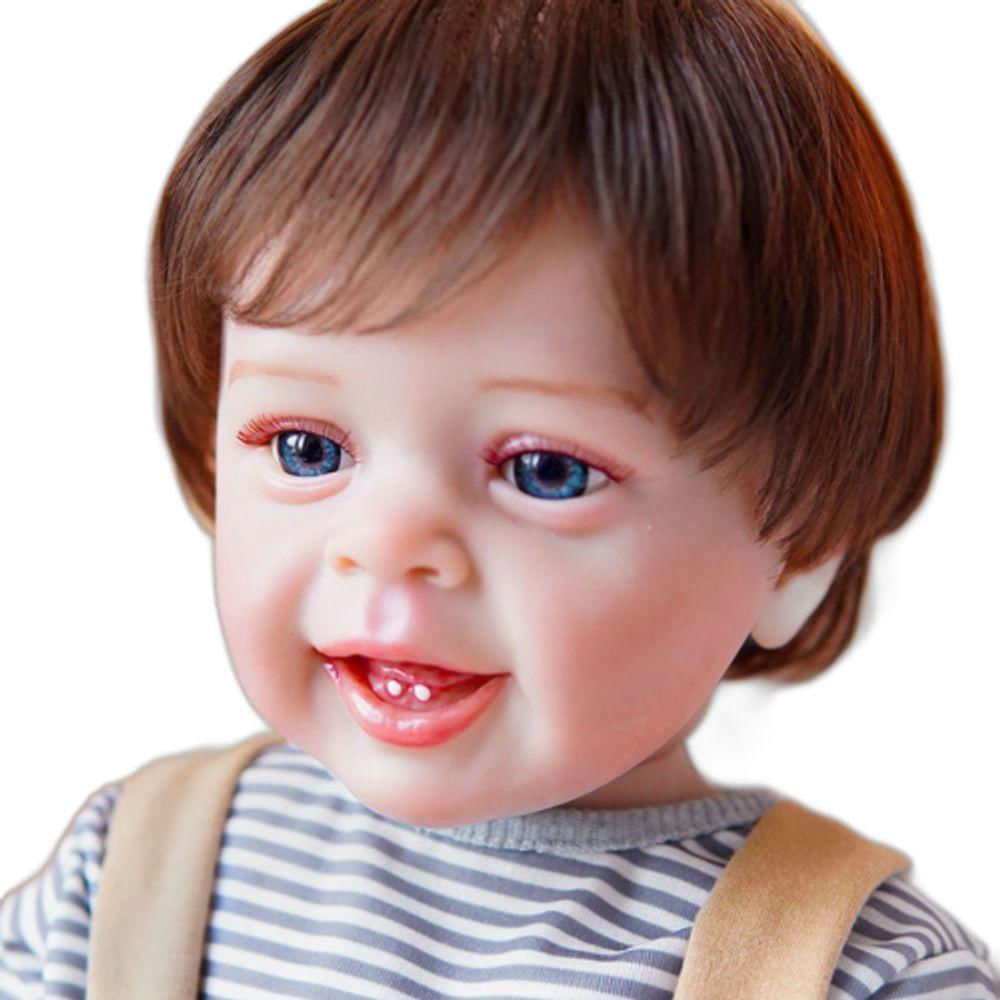 Bebe Reborn Menino Todo De Silicone De Vinil Realista Cabelo Implantado Fio A Fio