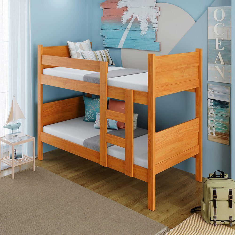 Transforme o quarto em um espaço prático, moderno e aconchegante com o Beliche Fortaleza.Desenvolvido com matéria-prima de alta qualidade e design inteligente, este beliche é a solução ideal para quem busca funcionalidade, resistência e aproveitamento de espaço sem abrir mão do estilo.Benefícios:Otimização de espaço: Ideal para quartos compactos, permitindo acomodar duas pessoas confortavelmente no espaço de uma cama.Praticidade no dia a dia: Fácil de montar e desmontar, adaptando-se a diferentes ambientes.Versatilidade de uso: Pode ser utilizado em residências, pousadas, repúblicas ou dormitórios coletivos.Acabamento de qualidade: Proporciona um visual elegante que harmoniza facilmente com diferentes estilos de móveis.Design robusto e moderno ? Estrutura firme que garante estabilidade e segurança durante o uso.Procedência: Nacional, fabricado com padrões de qualidade rigorosos.Garantia: 3 meses contra defeitos de fabricação.OBS: Não acompanha colchão!CaracterísticasTipo: BelicheModelo: VenezaCor: NatureDIMENSÕES DO PRODUTOAltura: 160cmLargura: 92cmComprimento: 202cmATENÇÃOAS IMAGENS SÃO MERAMENTE ILUSTRATIVAS E PODEM SOFRER VARIAÇÕES DE COR E PEQUENOS DETALHES DE ACORDO COM O SEU MONITOR, ILUMINAÇÃO DO AMBIENTE E ATÉ MESMO A SUA PERCEPÇÃO VISUAL.Beliche Resistente Fortaleza em Mdf Vira 2 Camas Solteiro Nature Amadeirado