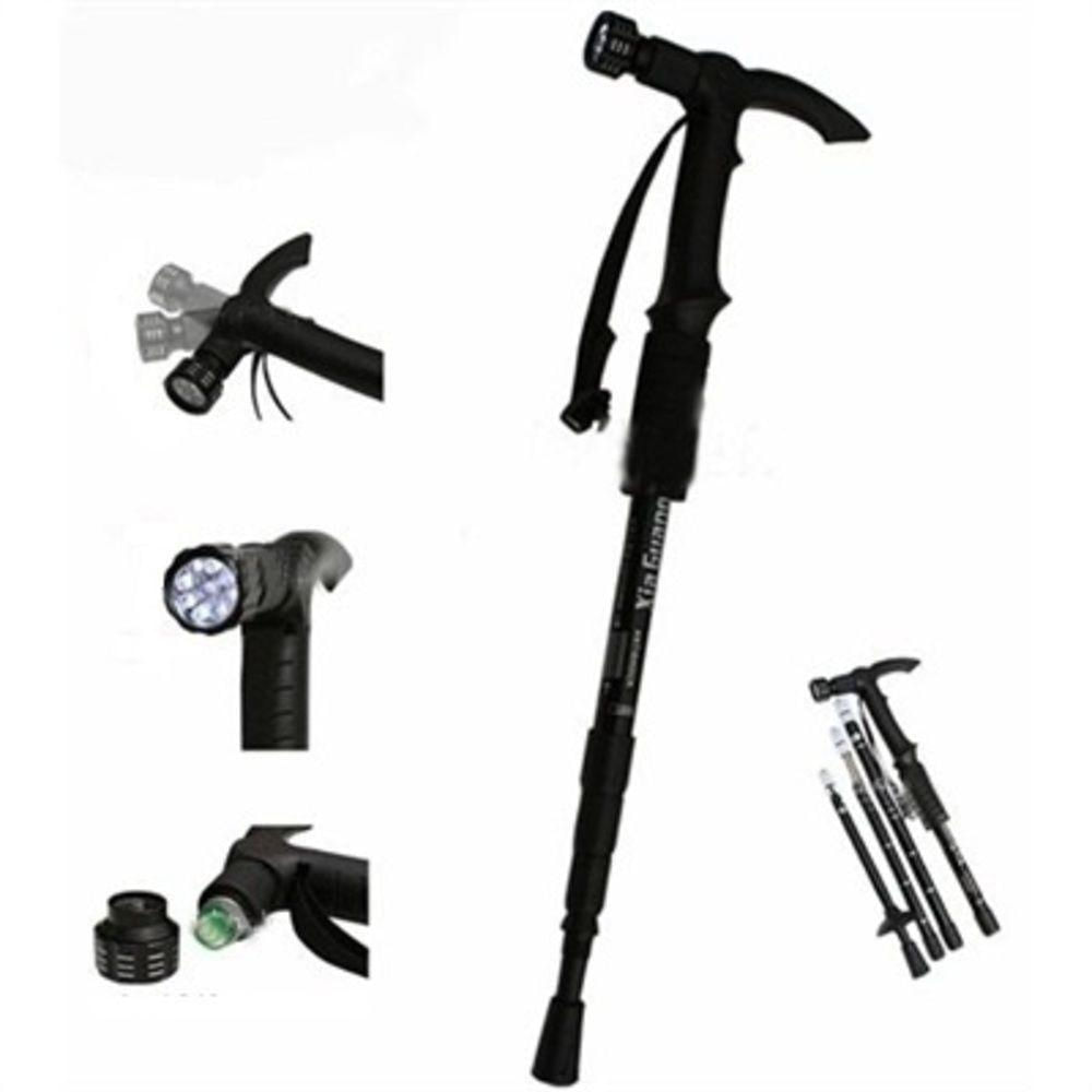 Bengala Ajustável Led Bastão Lanterna Caminhada Cajado Retratil Alumínio Trilha Peregrinacao Multiuso