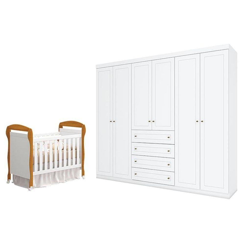 Berço Americano Danny Branco Acetinado Savana Reller E Guarda Roupa Casal Americano 6 Portas Branco Hp - Henn.