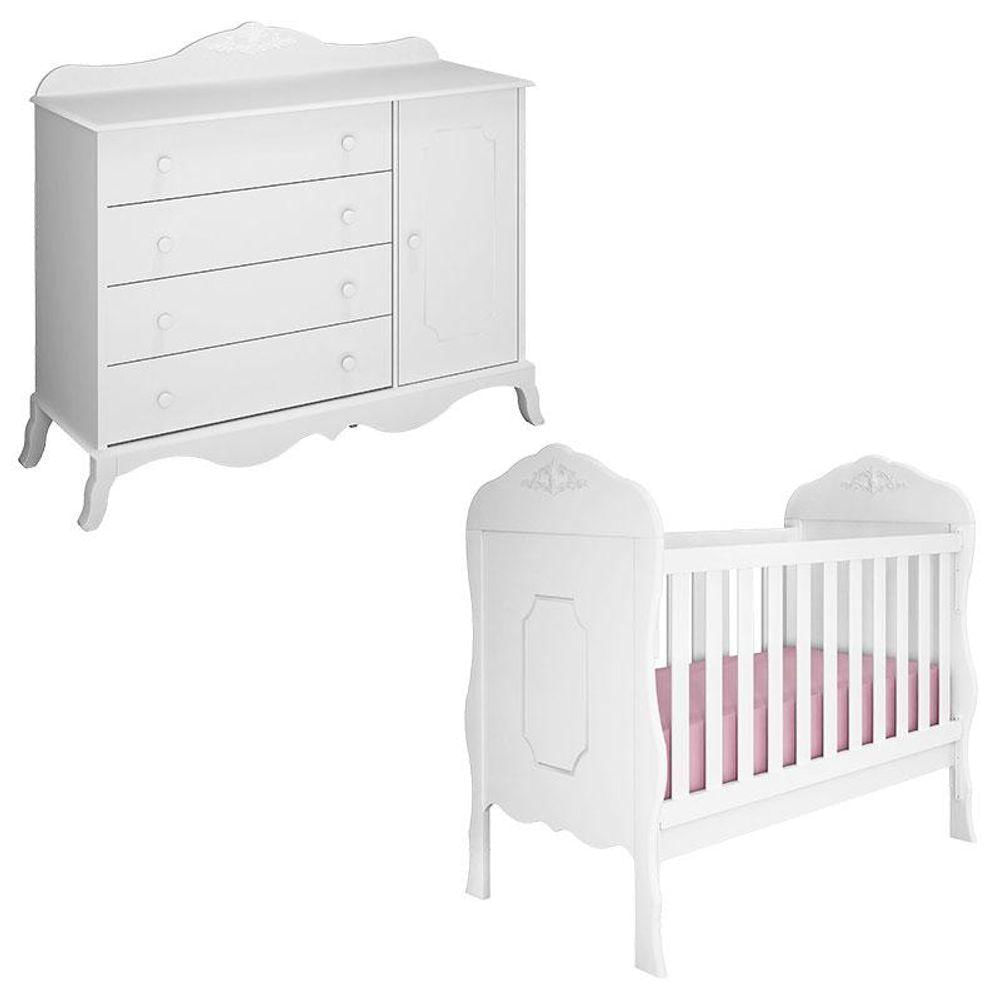 Berço Americano E Cômoda Infantil Realeza Branco Acetinado - Canaã