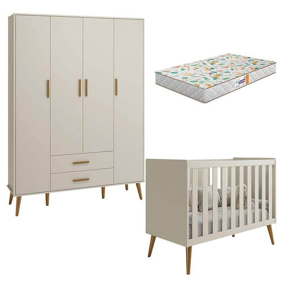 Berço Americano E Guarda Roupa Infantil 4 Portas Isis Areia Acetinado Com Colchão Gazin - Reller