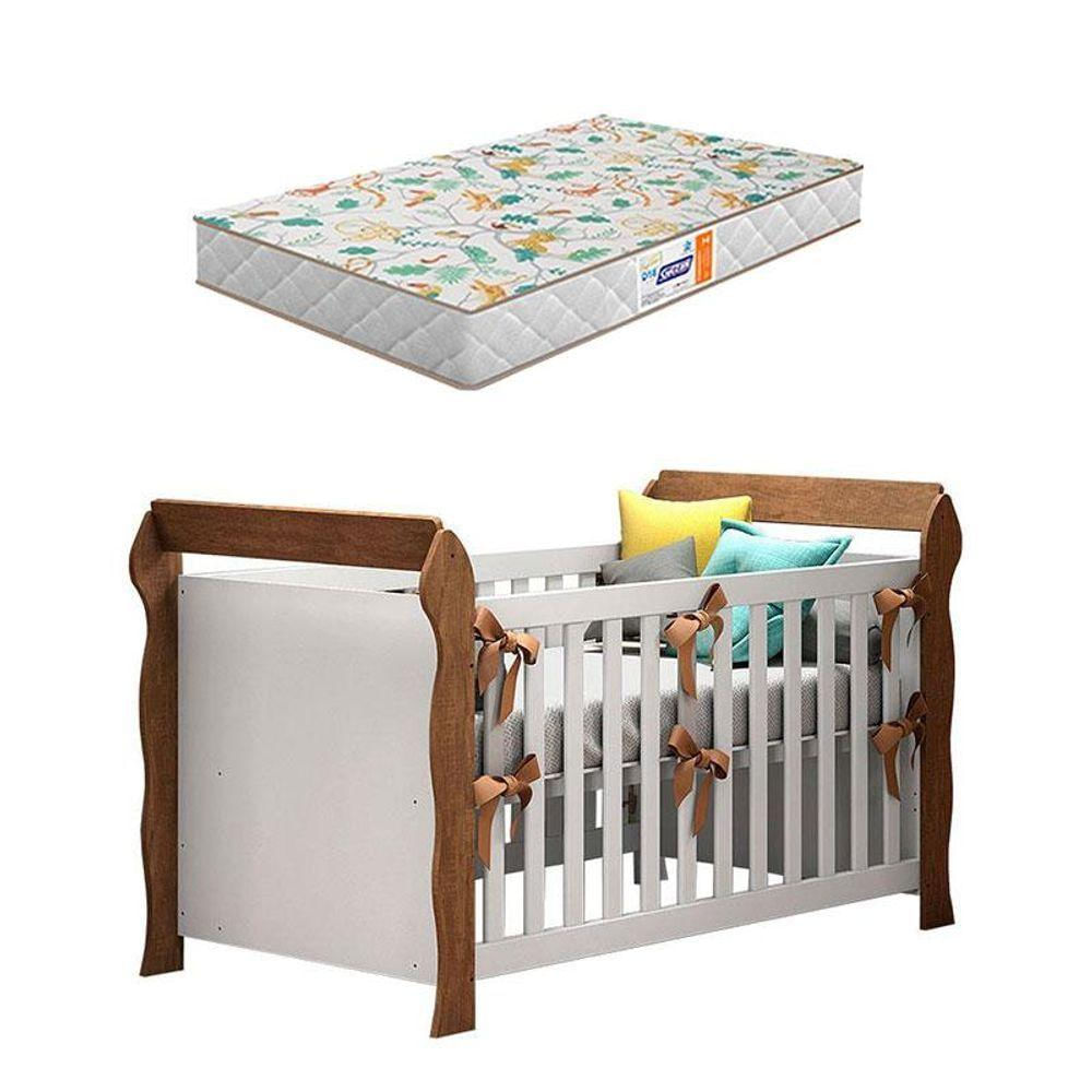 Berço Americano Lara Branco Acetinado Amadeirado Com Colchão Gazin - Carolina