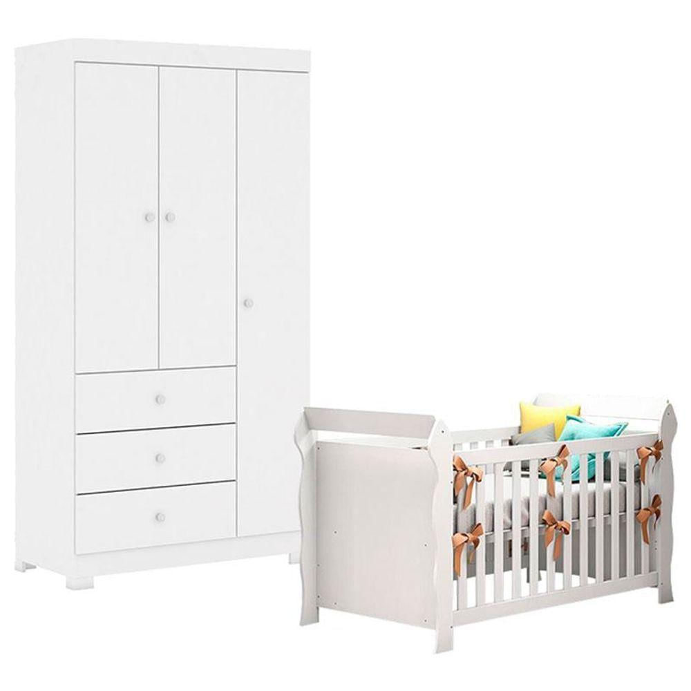 Berço Americano Lara Com Guarda Roupa Duda 3 Portas Branco Brilho - Phoenix Baby
