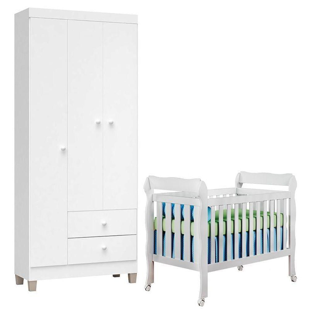 Berço Americano Lila E Guarda Roupa Ternura Baby 3 Portas Branco Brilho - Incorplac