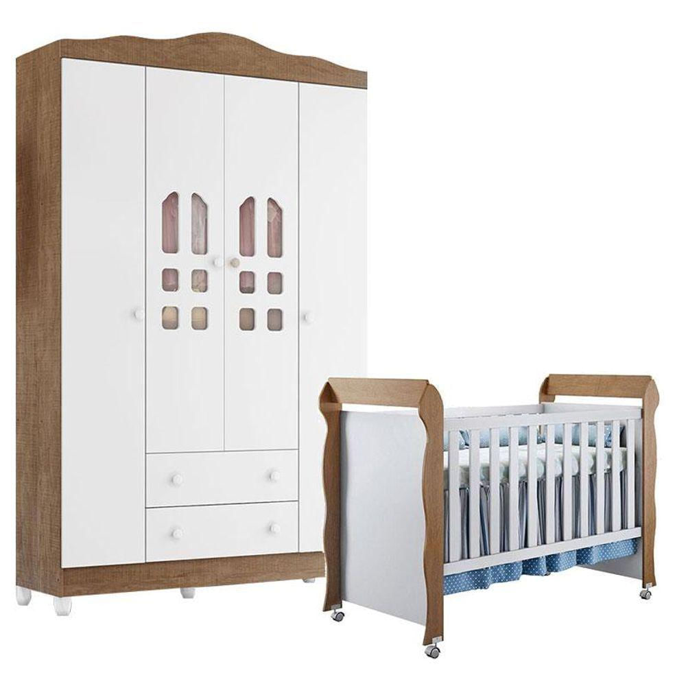 Berço Americano Mirelle E Guarda Roupa New Selena 4 Portas Branco Acetinado Amadeirado Móveis