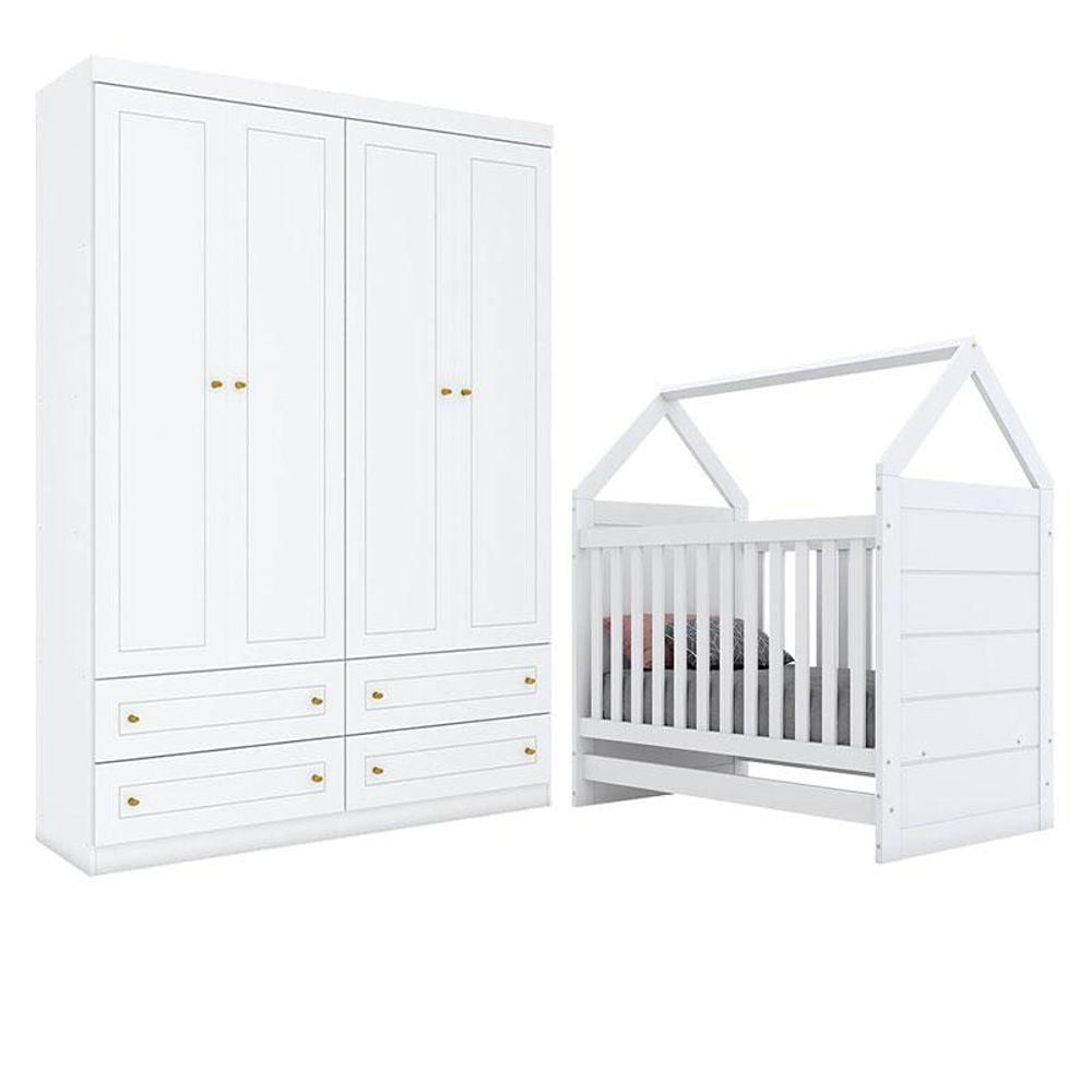 Berço Montessoriano Americano E Guarda Roupa Infantil Mississipi 4 Portas Branco Hp - Henn