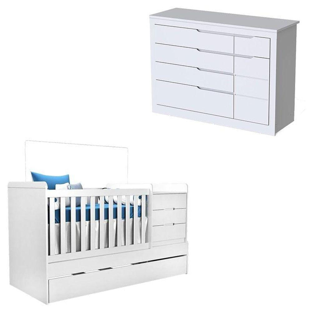 Berço Multifuncional E Cômoda Cléo Branco Acetinado - Carolina Móveis