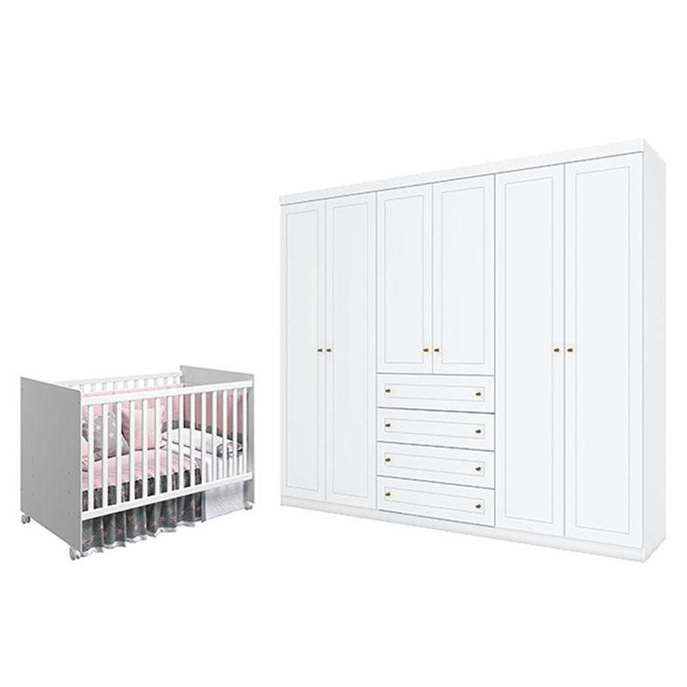 Berço Nacional Mel Branco Acetinado - Reller E Guarda Roupa Casal Americano 6 Portas Branco Hp - Henn