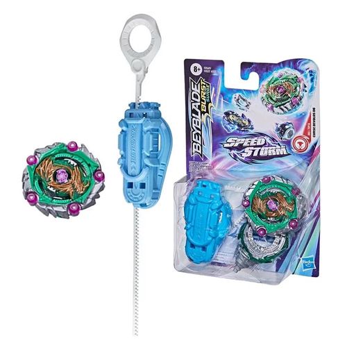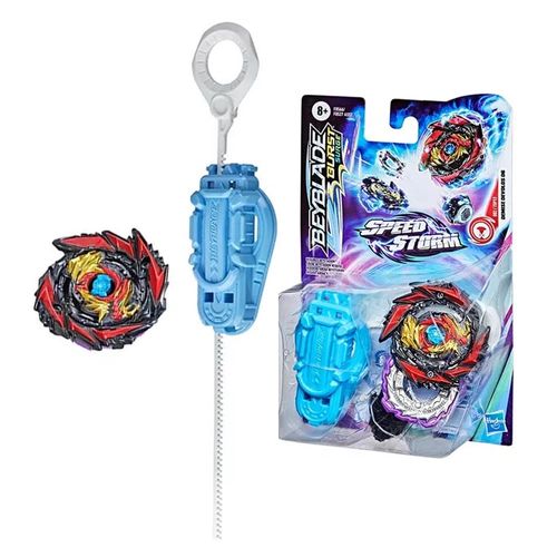 O pião possui uma ponta de desempenho com partes de metal, asas estabilizadoras na camada de energia, e um componente Chip Tempestade de giro à direita. Os piões Beyblade Burst Speedstorm vêm com um código escaneável na Camada de Energia para competir e dar acesso a outros componentes no app Beyblade Burst. Indicado para crianças a partir dos 8 anos.