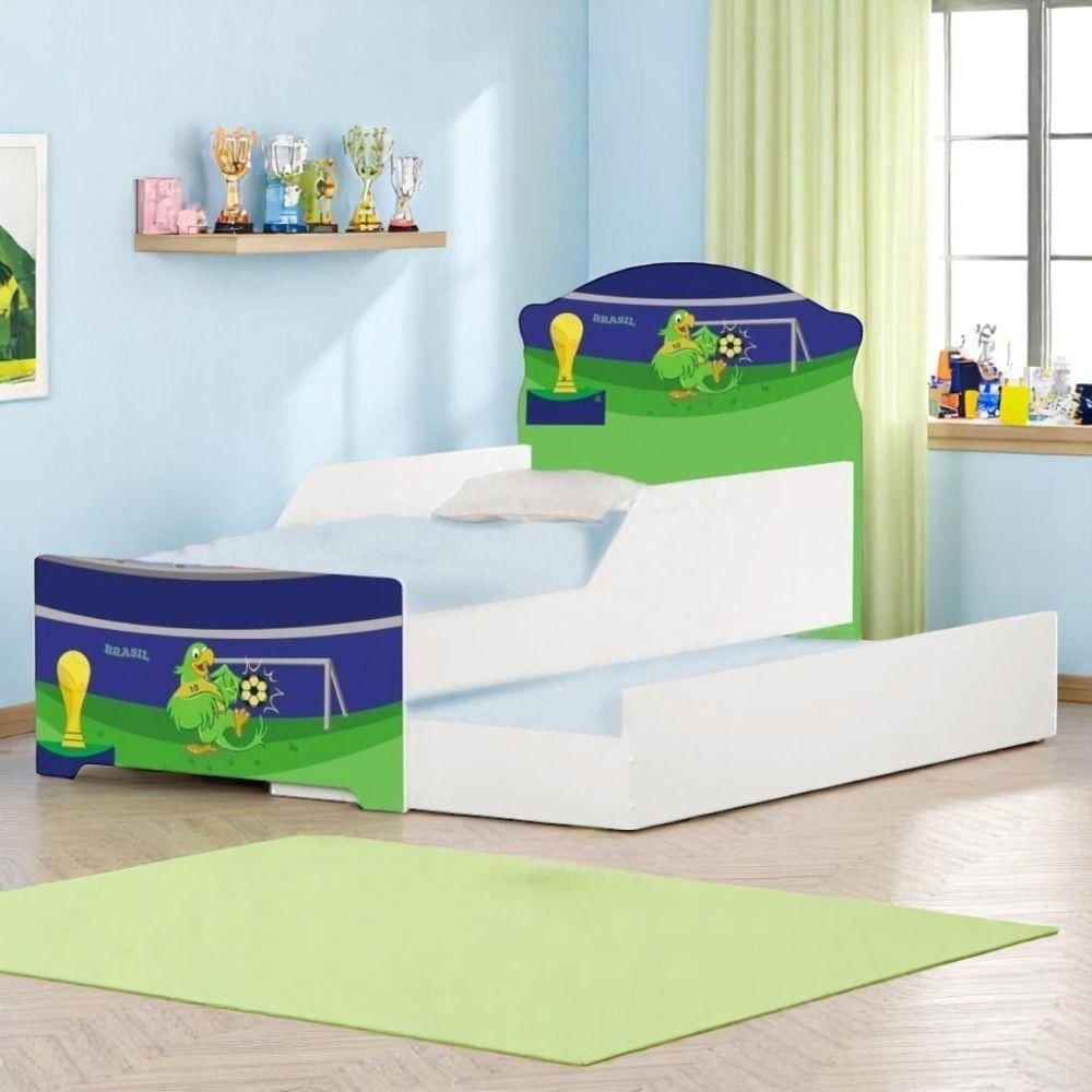 Bi Cama Infantil Kmcb com Proteção Lateral Estrutura Madeira Reforçada Futebol Adesivo Vinil
