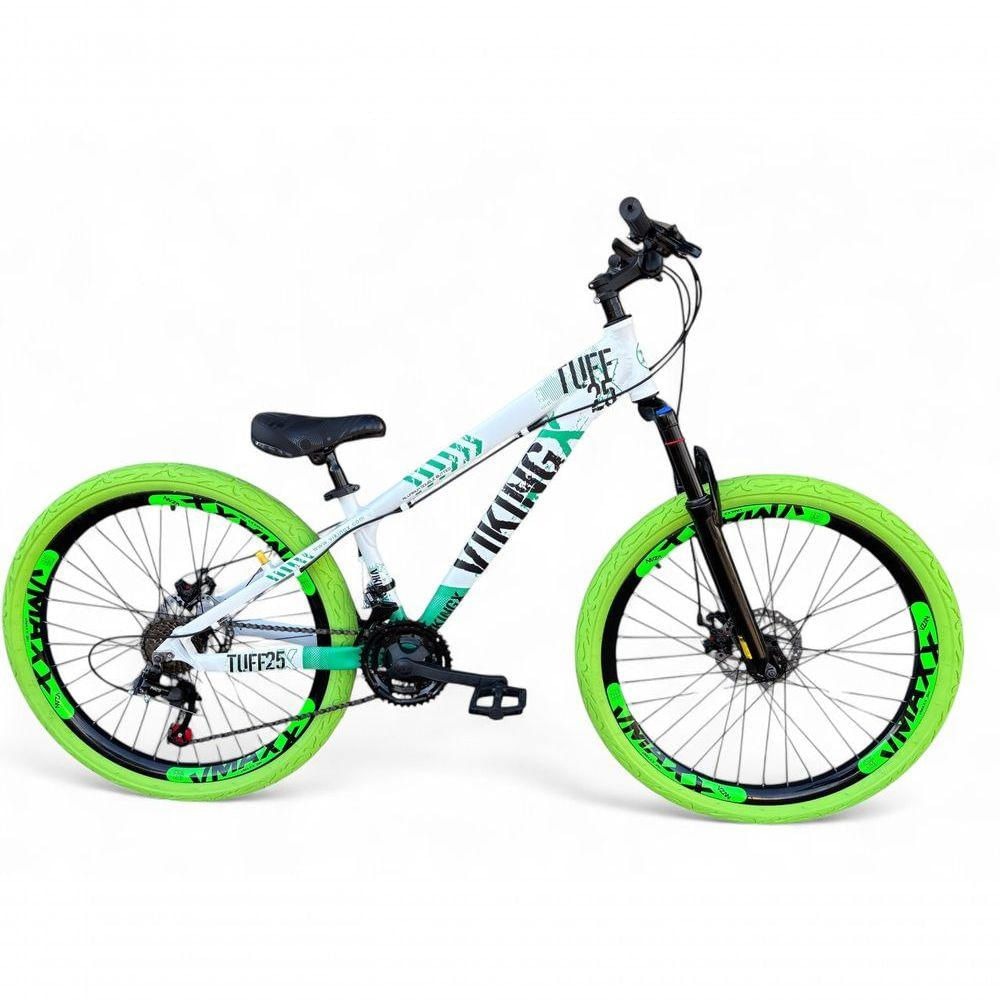 Bicicleta Aro 26 Vikingx Tuff Freeride 21v Aro Vmaxx Freio A Disco Garfo Suspensão Pneu Flame branco-Verde X25