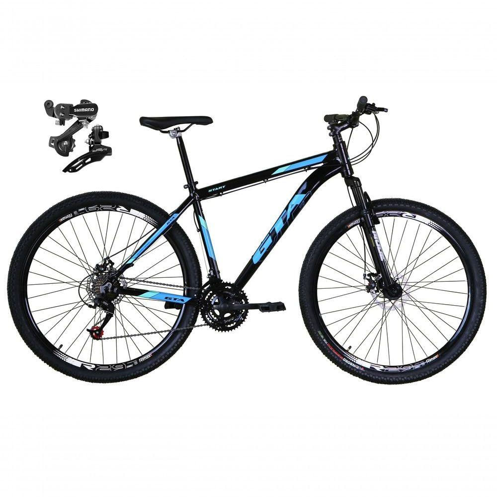 Bicicleta Aro 29 Gta Start Câmbios Shimano 21v Freio A Disco Mountain Bike Alumínio preto-Azul Tam: 15