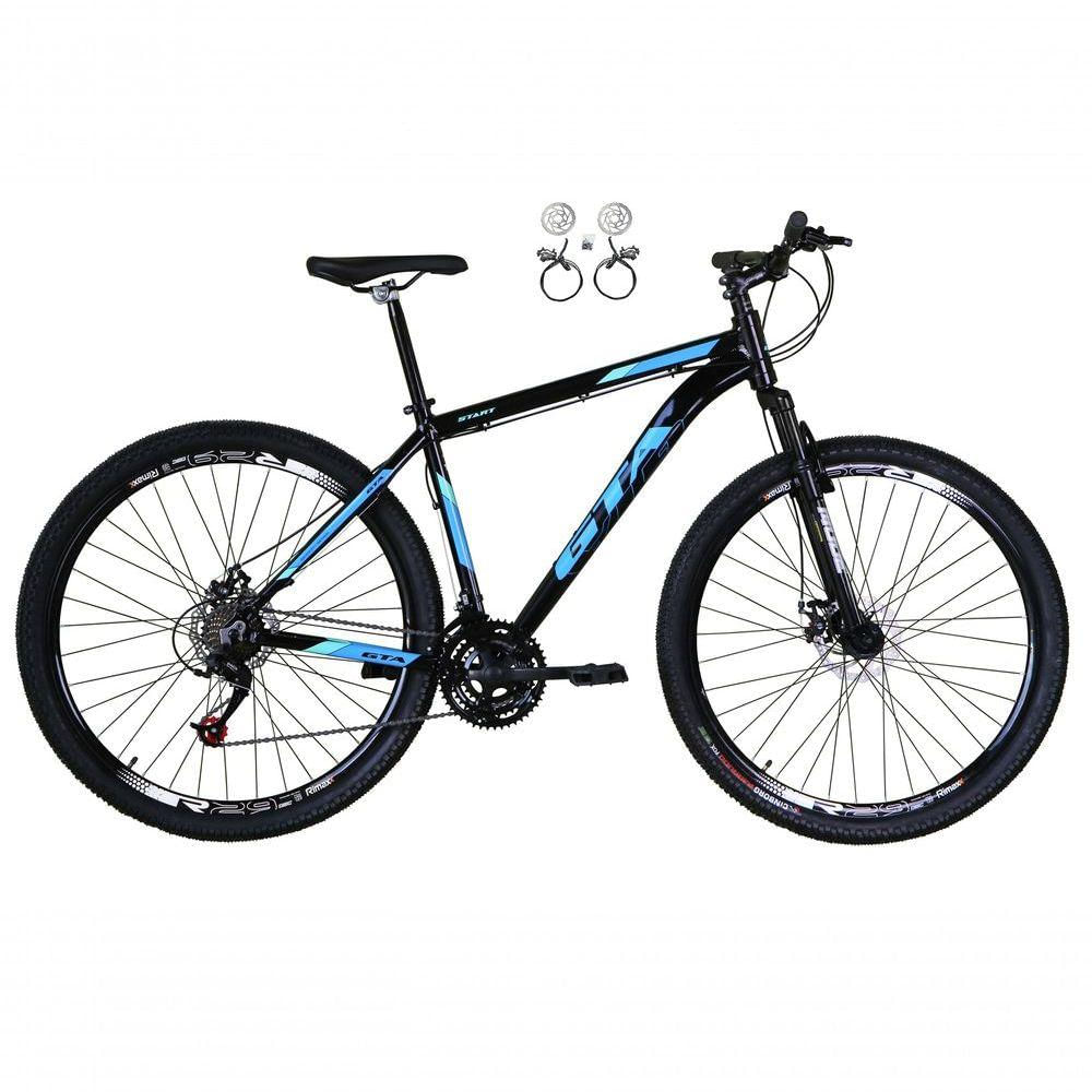 Bicicleta Aro 29 Gta Start Freio Hidráulico 21v Alumínio Mountain Bike Garfo Suspensão preto-Azul Tam: 21