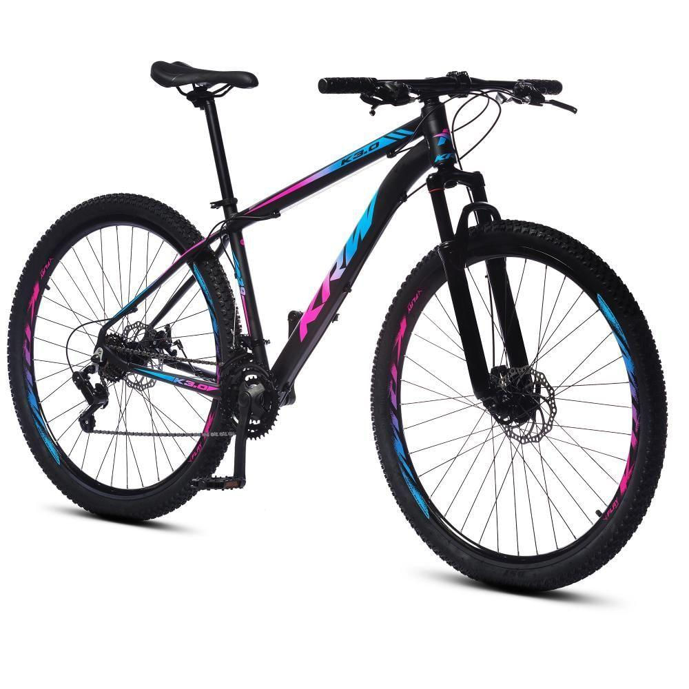 Bicicleta Aro 29 Krw Alumínio 24 Vel Freio A Disco X52 Cor:preto/rosa E Azul;tamanho Quadro:17 Preto/rosa E Azul