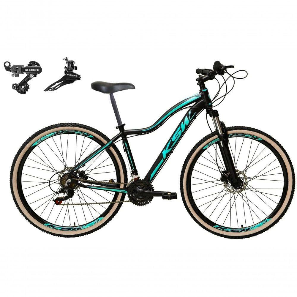 Bicicleta Aro 29 Ksw Mwza Feminina Câmbios Shimano 24v Aluminio Freio A Disco Garfo Suspensão preto-Azul Tam: 15