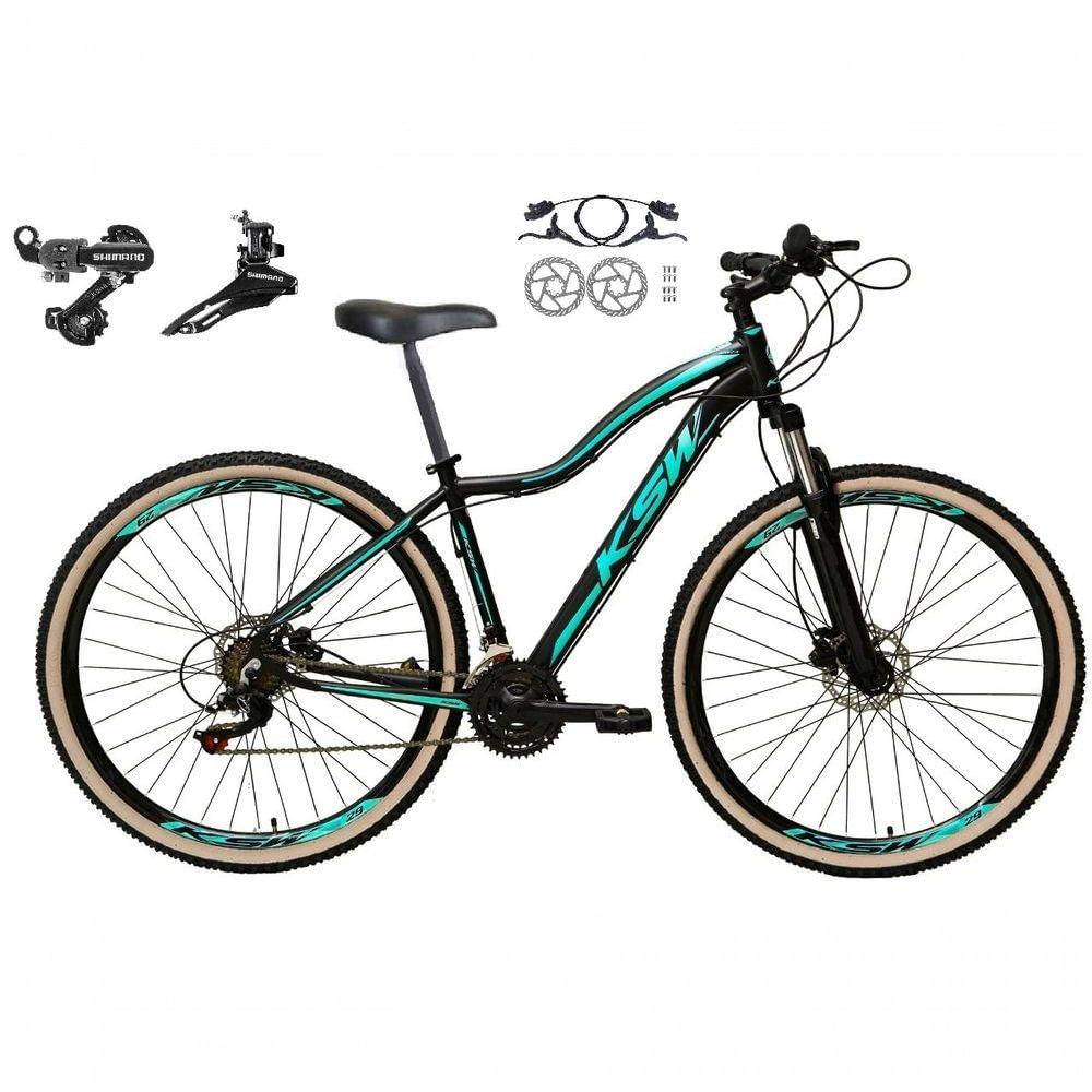 Bicicleta Feminina Aro 29 Ksw Mwza Alumínio 24v Cambios Shimano Freio A Disco Hidraulico preto-Azul Tam: 17