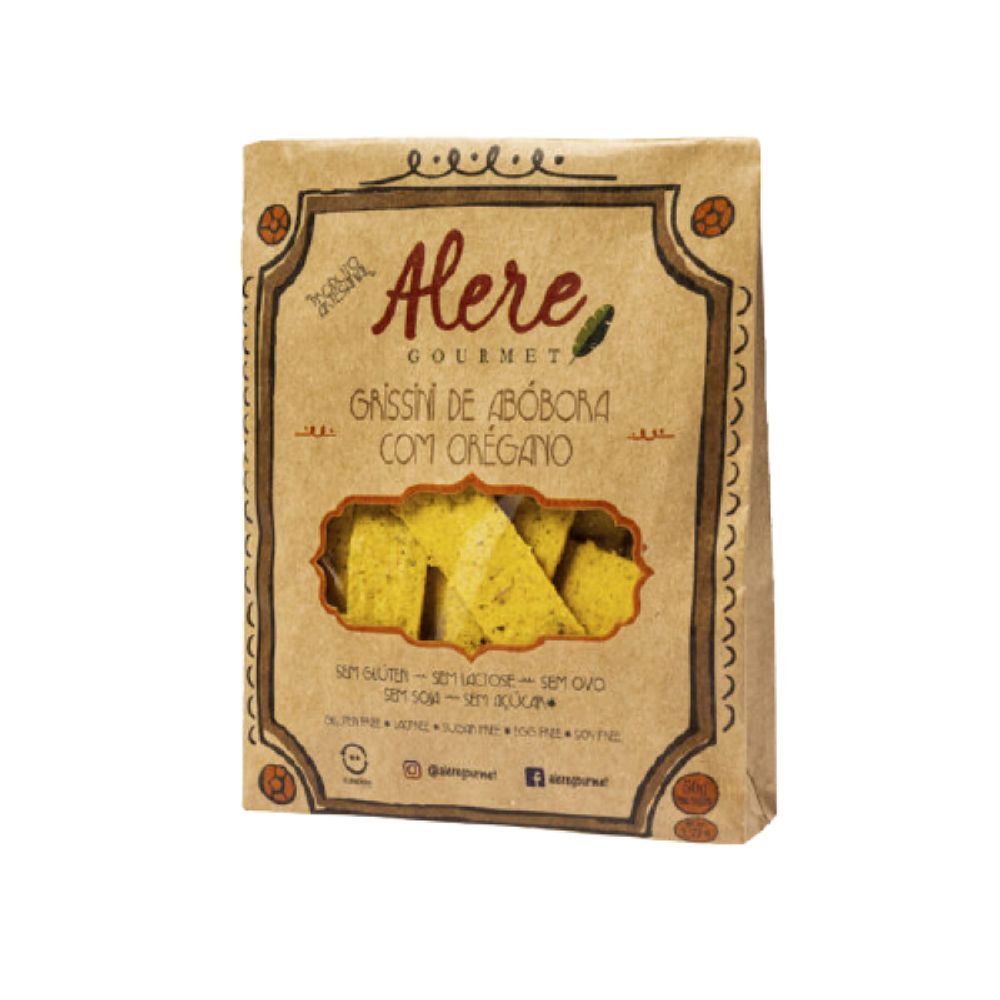 O Biscoito Grissini de Abóbora com Orégano Sem Glúten Alere é um snack saboroso é muito nutritivo, todo mundo em casa vai se deliciar. Não contém glúten, leite, ovo, soja e açúcar.