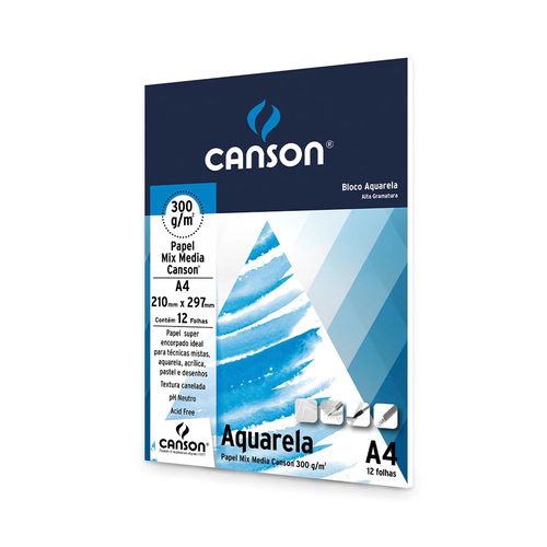 O Bloco Artístico A4 Canson é indicado para crianças nas atividades de educação, artística e matemática. Sua utilização auxilia no desenvolvimento da coordenação motora e raciocínio lógico. O Bloco Artístico é um papel de alta gramatura e com dupla face de utilização. Texturizada e lisa e com alto nível de conservação. Especialmente indicado para aquarela, tinta acrílica e também para técnicas secas como giz pastel, giz oleoso e lápis de cor. Formato: A4 contém 12 folhas. Gramatura: 300 g/m2 textura, delicadamente canelada, para realçar os efeitos de luz da aquarela.