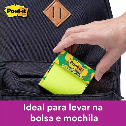Porta Notas Adesivas Portátil – Post-it® Notas Para Levar. As ideias podem mudar o mundo e elas podem surgir em qualquer lugar. As Notas Para Levar Post-it® estão com você na sua bolsa, na sua mochila, e onde você estiver, assim, você sempre poderá anotar suas ideias. E quando você voltar para casa, o Super Adesivo Post-it® vai te ajudar a organizá-las na parede, ou onde preferir. Agora, é só colocar em prática e fazer acontecer! 76 mm x 76 mm. 90 FOLHAS. Os papéis utilizados na fabricação dos Blocos de Notas Adesivas Post-it® da 3M são recicláveis e certificados pelo Sustainable Forestry Initiative (SFI - Chain of Custody Certified).