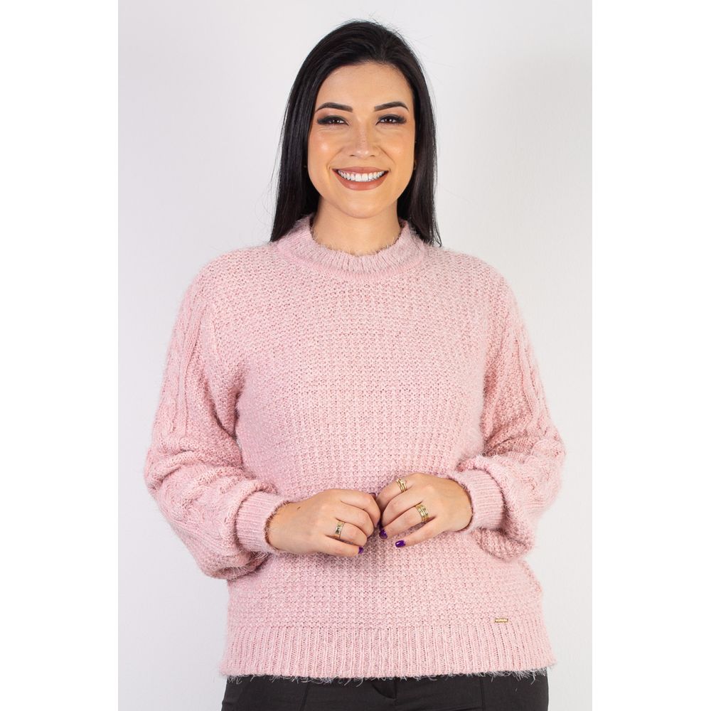 Blusa de malha feminina, com gola redonda e trabalhado em tranças nas mangas. Possui espessura grossa, super quentinha, é a opção ideal para os dias de inverno. Composição: 70% poliéster 30% acrilico. Modelo veste: Tamanho M.