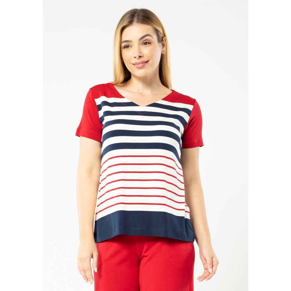 Blusa Manga Curta Pau a Pique Listrada Vermelho G / Vermelho